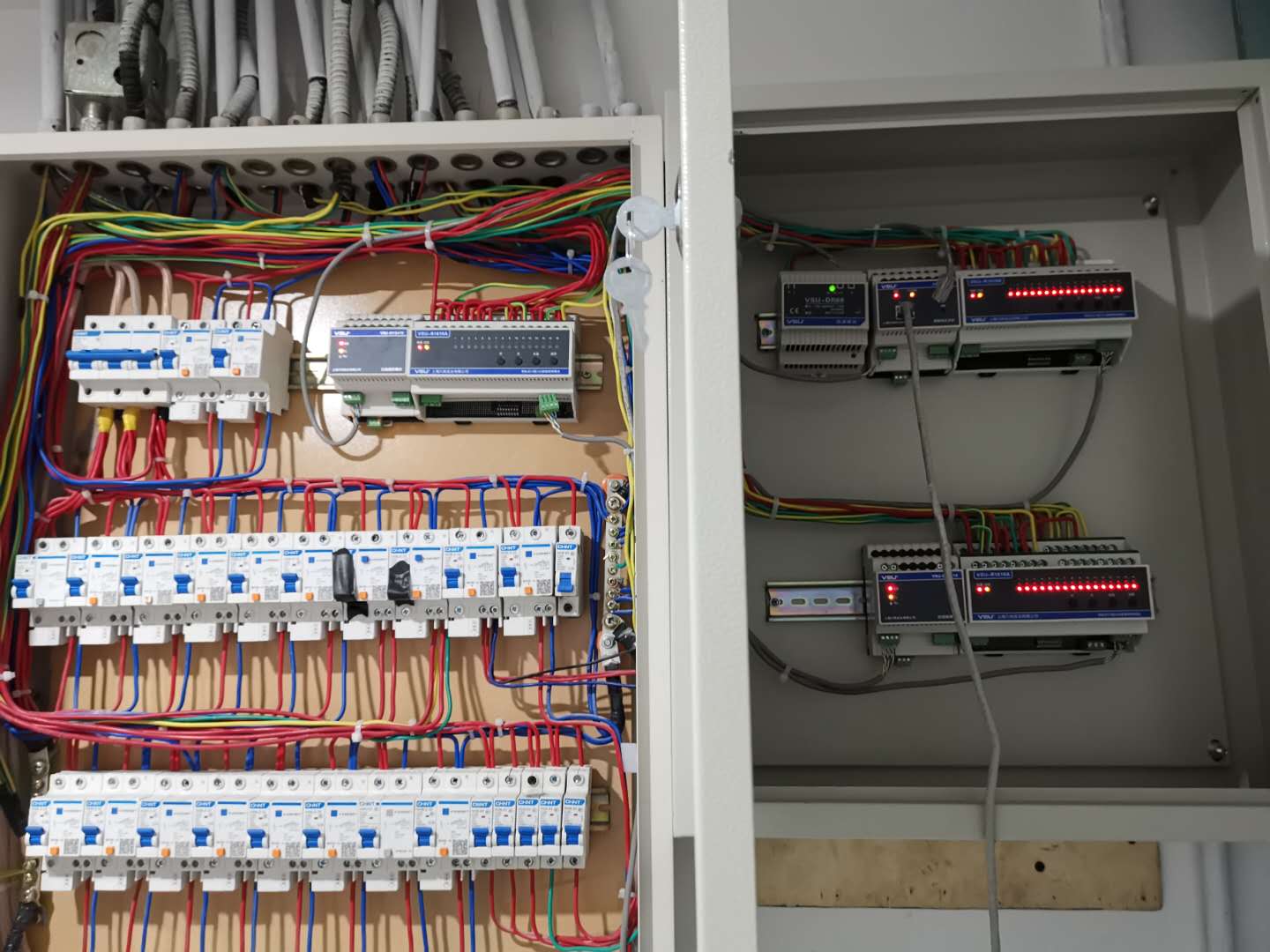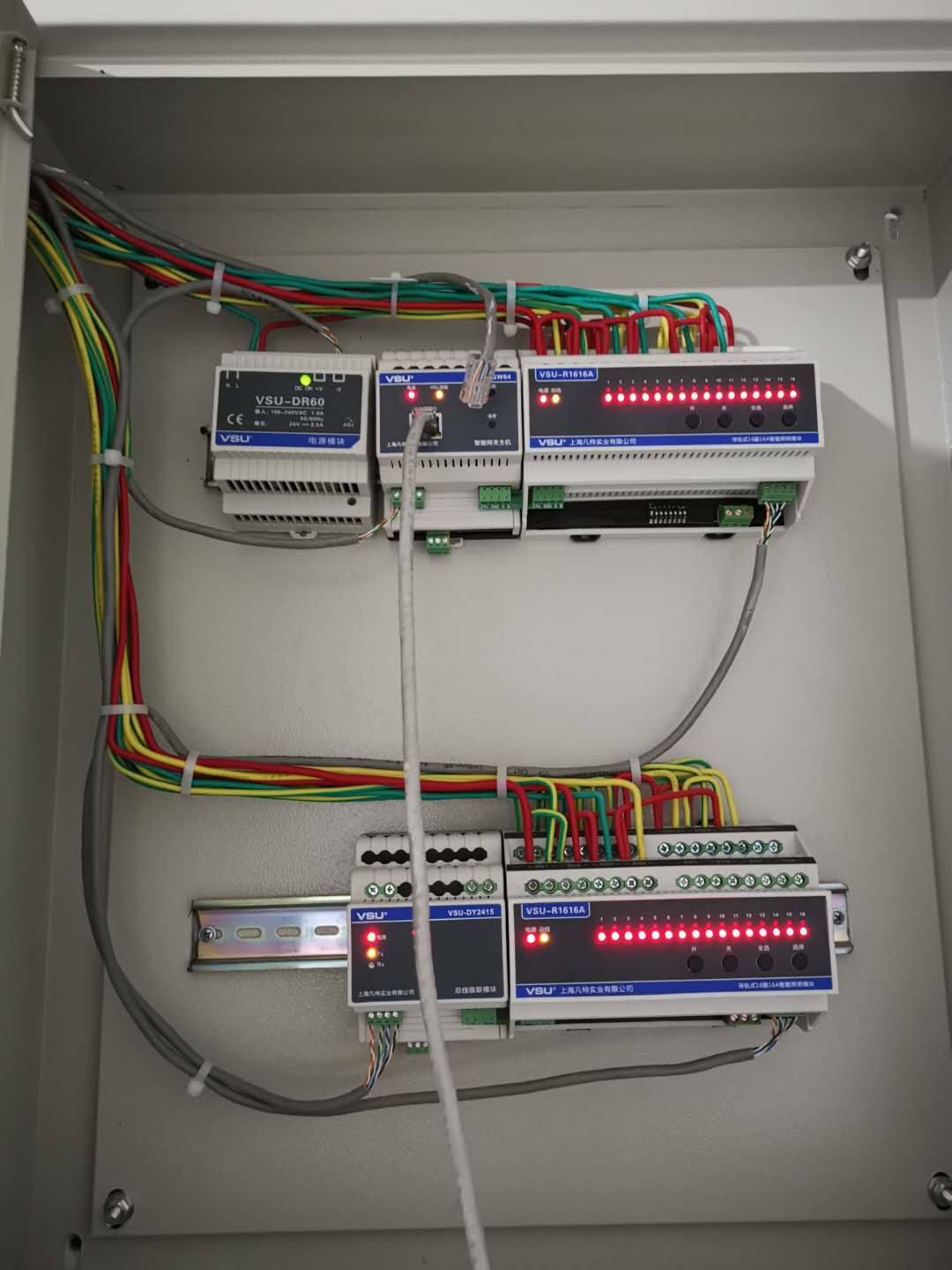 采用VSU總線型成套產品:智能網(wǎng)關主機控制整體,接受到手機或面板的指令輸送到開關執(zhí)行模塊進行遠程開關燈操作,采用的照明模塊是16路16A的,搭配DR60電源模塊、級聯(lián)模塊確保供電充沛。總線的特點是連產品的調試檢測都不需要到現(xiàn)場,遠程即可將其調試就位。這個項目甚至連我司技術人員遠程協(xié)助都不需要自己就安裝完成,可見其有多便于安裝,加上連接片用于串聯(lián)模塊,不是專業(yè)人員也可自主安裝使用。