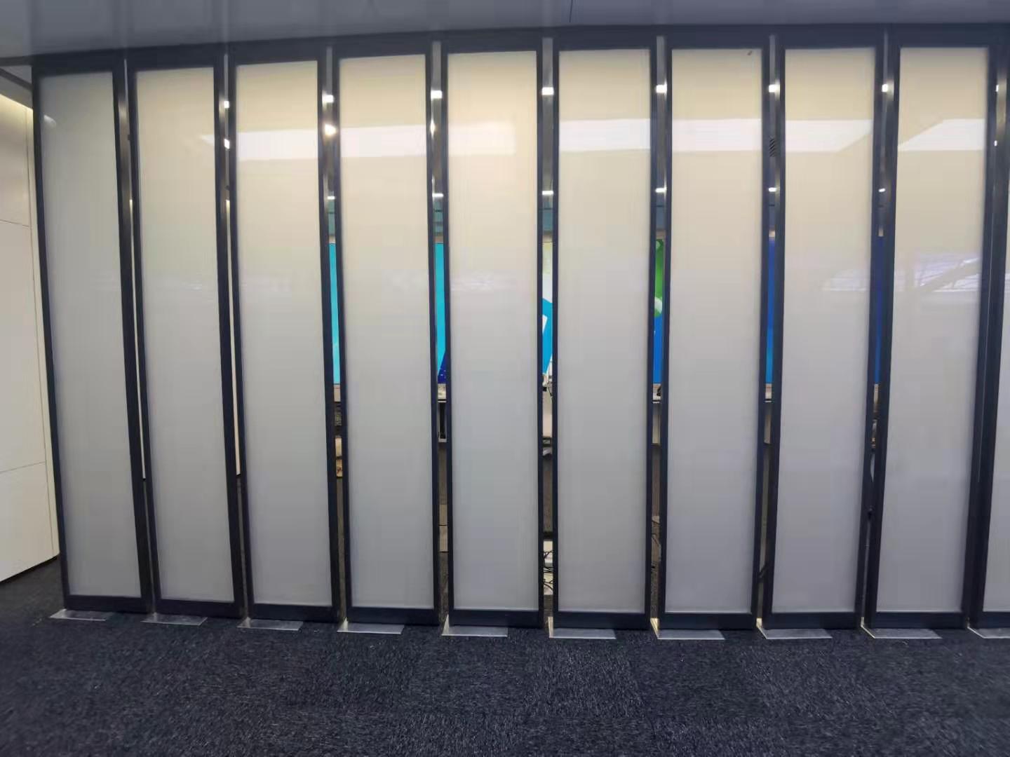 項目采用7寸觸摸屏對整個辦公區(qū)域進行集中控制:燈光控制;電動門的開啟與關閉;霧化玻璃的透明/霧化切換,霧化玻璃門的旋轉;空調的高中低三檔控制,以及各種場景化的控制效果。