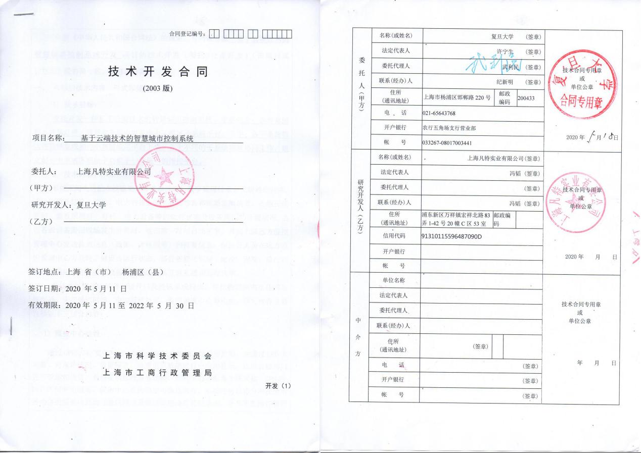 同年 5月11日,上海凡特實(shí)業(yè)有限公司正式與復(fù)旦大學(xué)簽訂《技術(shù)開(kāi)發(fā)合同》——基于云端技術(shù)的智慧城市控制系統(tǒng)。項(xiàng)目將圍繞智慧城市開(kāi)展科學(xué)研究、技術(shù)開(kāi)發(fā)、成果轉(zhuǎn)化及文化交流等方面的合作。這次合作一面是能夠落實(shí)國(guó)家科教興國(guó)戰(zhàn)略,促進(jìn)科技創(chuàng)新,加快企業(yè)經(jīng)濟(jì)發(fā)展,充分利用高等院校的技術(shù)、人力等資源以及先進(jìn)成熟的技術(shù)成果。另一面,利用企業(yè)的生產(chǎn)條件,提高教學(xué)的科研能力,將科研成果盡快地轉(zhuǎn)化為生產(chǎn)力,不斷提升企業(yè)的技術(shù)和管理水平,雙方發(fā)展各自優(yōu)勢(shì)。上海凡特通過(guò)多種形式開(kāi)展全面合作,共同推進(jìn)公司與復(fù)旦學(xué)校的全面技術(shù)合作,形成專業(yè)、產(chǎn)業(yè)相互促進(jìn)、共同發(fā)展,努力實(shí)現(xiàn)“校企合作、產(chǎn)學(xué)雙贏”!