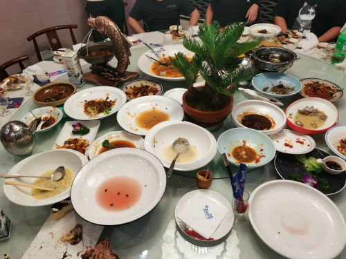 在推上蛋糕,唱完生日歌,送上祝福,人人酒足飯飽之后,才發(fā)現(xiàn)團建活動來到了最高潮——小游戲。一個考驗反應力、專注力的小游戲,做錯或者沒反應過來的人都得接受旁邊人幫自己夾的“一口”菜。真是一口還是半碗,小編就不說了,下面的圖片表明了事情的結(jié)果。