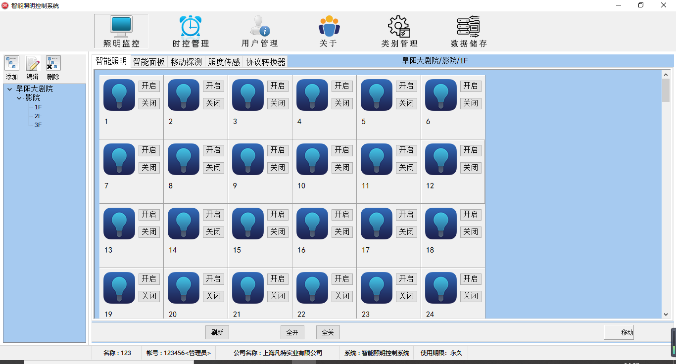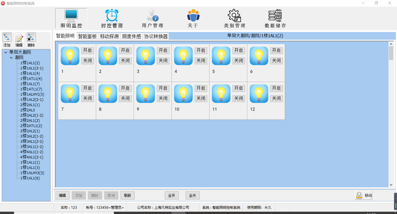智能照明控制系統(tǒng)可在管理中心通過電腦遠程控制整個劇場的燈光,實現(xiàn)一鍵全開、全關,亦可控制每個回路的開關,預設上、下班時間自動開啟、關閉整個場地的燈光,避免漏關、錯關等現(xiàn)象,不同場館功能廳都有其專屬的控制方式。例如:阜陽圖書館的藏書區(qū)域出入頻繁,但不必常亮的區(qū)域,采用紅外感應控制,可實現(xiàn)人到燈亮,人走燈延時熄滅的效果,既能最大限度節(jié)約能源,又能保證照明需求;閱覽室則通過照度控制和定時控制,光照傳感器根據(jù)室外環(huán)境光照調光,保證合適的閱讀照度,同時節(jié)約能源。阜陽大劇院多功能廳表演區(qū)域主要采用調光控制、場景控制,通過實現(xiàn)場景的預設置和記憶功能,只需操作控制面板即可開啟一個燈光場景,各照明回路隨即能自動變換到相應的狀態(tài),通過調光在不同表演需求中產生不同的燈光效果,營造最舒適的觀感效果。