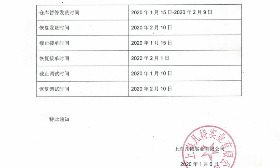 倉庫暫停發(fā)貨時間:1月15號至2月9號; 2月1號恢復接單; 調(diào)試暫停時間:1月10···